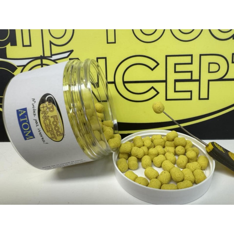 il s'agit d'une equilibrée de 7X9 mm avec des additifs particuliérement efficace sur les carpes dont autolysat de poisson, foie de boeuf, dmtp,17,20B. ce concept additionnel change la dynamique de votre appat en diminuant egalement sa densité et son attractivité.
